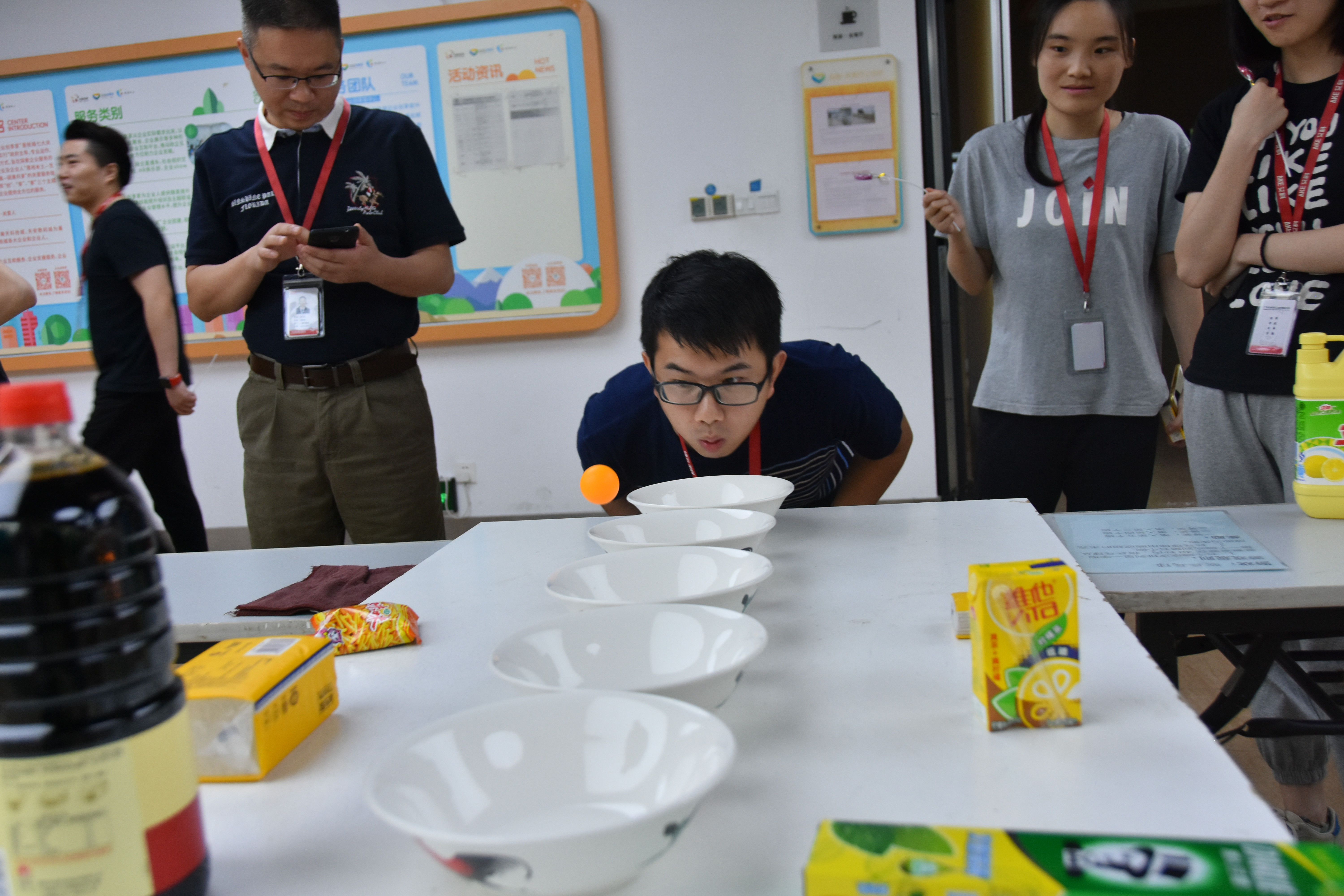 乒乓球才能越过一只又一只大碗,