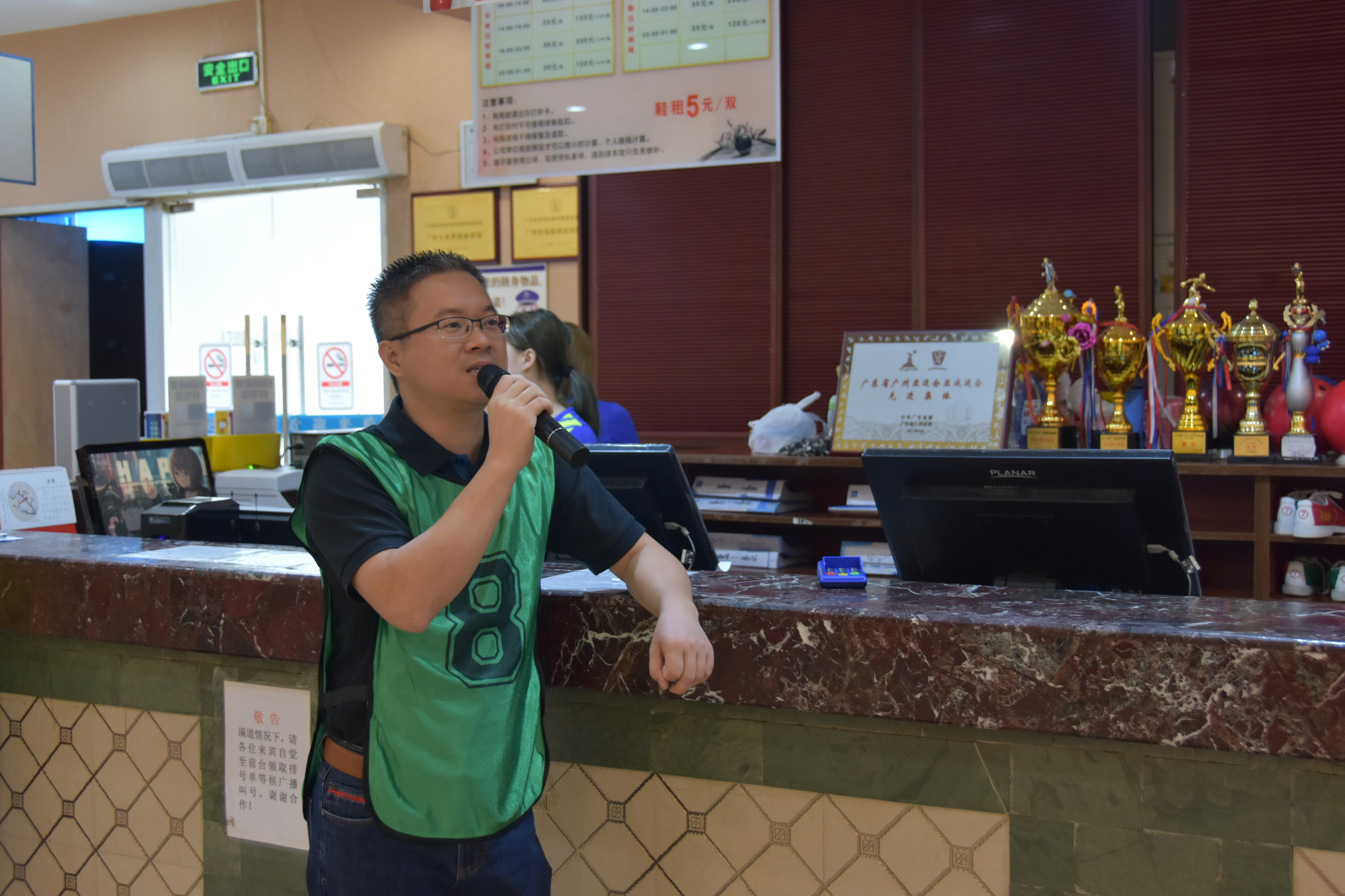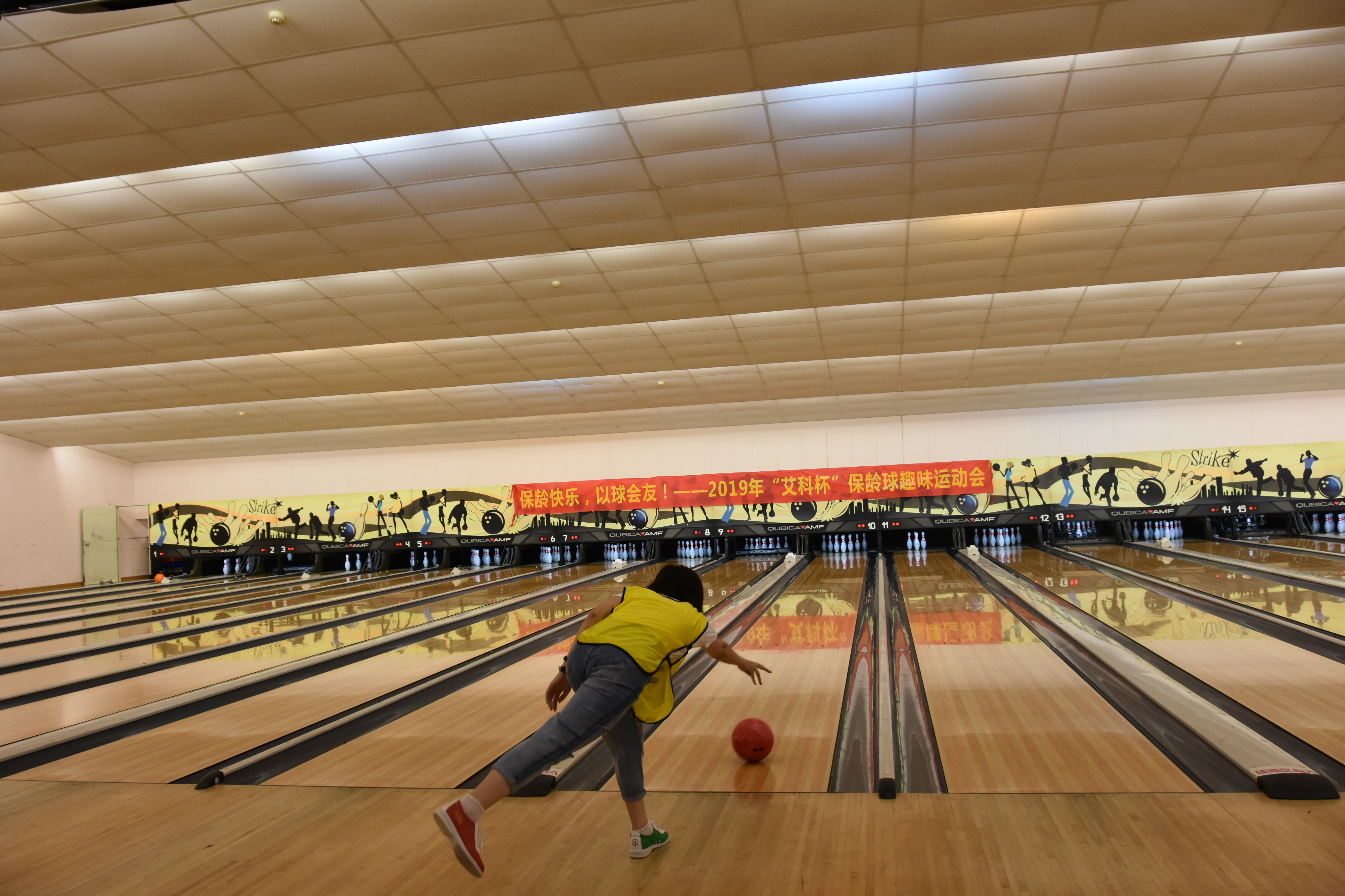 比赛开始,来自不同单位的参赛者被分为若干小组,各个参赛小组在各自赛道上尽展飒爽英姿,为小组荣誉打好每一个球。助走、出手、观察球的线路、分析击打效果,平日里所有的疲惫似乎在球被击倒的那一刻也被击个粉碎,随即被球馆里四处洋溢的热情一驱而散。