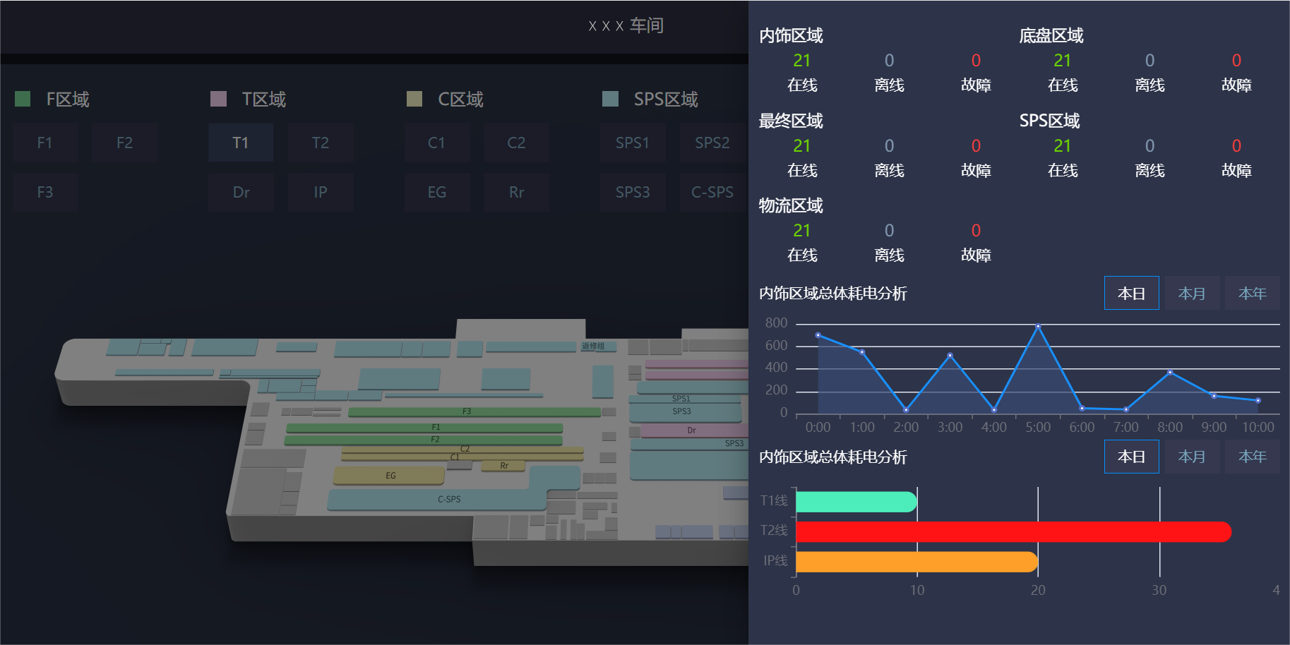 智能照明控制系统 对工厂办公楼、厂房、生产区域进行照明设备的场景化监控,并能监测各区域、各灯具的工作状态;满足车间、区域、产线、工艺段的生产区域精细化照明应用管理,实现集中管理、定时控制、应急手动控制、场景控制等功能,达到按需照明、节能管理的目标。 |