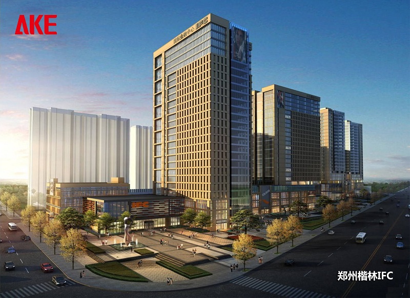 郑州楷林IFC由四栋高层写字楼和高端商务配套裙房组成,建筑外观采用石材和玻璃幕墙穿插设计的手法,形成了建筑风格虚实结合的效果,体现高效、简洁的现代感。项目主楼为地上25层,地下2层建筑,楼高99.9米,标准层面积为1400-1800平方米,地下为拥有1910个停车位的大型停车场。