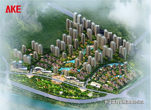 长沙蓝月谷裕源国际山庄位于宁乡县东部,紧临金洲大道,建筑面积80平方米,占地面积400平方米。小区采用山水庭院式的水景园林,并尊重当地的依山傍水的自然环境,充分发挥小区内现有的自然水系环境优势,保护现有山体植被,开发与建设密切结合地形,显山露水,创造出别具一格的城市生活空间。