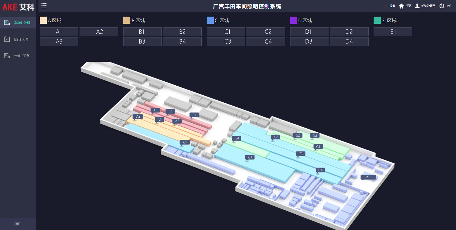 为积极落实绿色发展和双碳目标,广汽丰田从研发、采购、销售、生产等各个环节,对能源管理、碳排放管理等多个方面,联动全产业链打造绿色工厂,制定了详细具体的每年能源递减目标,提出了对生产车间照明系统进行智能化改造的需求,以降低人工成本、减少能源浪费、降低能耗。