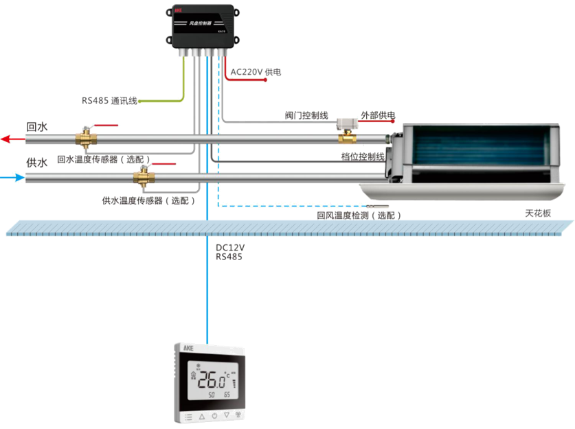 节能控制:通过风机盘管末端定温差风水联调技术,实现末端换热效率提升及管网输送能耗下降,达到节约系统耗电,节约冷冻水流量的效果。