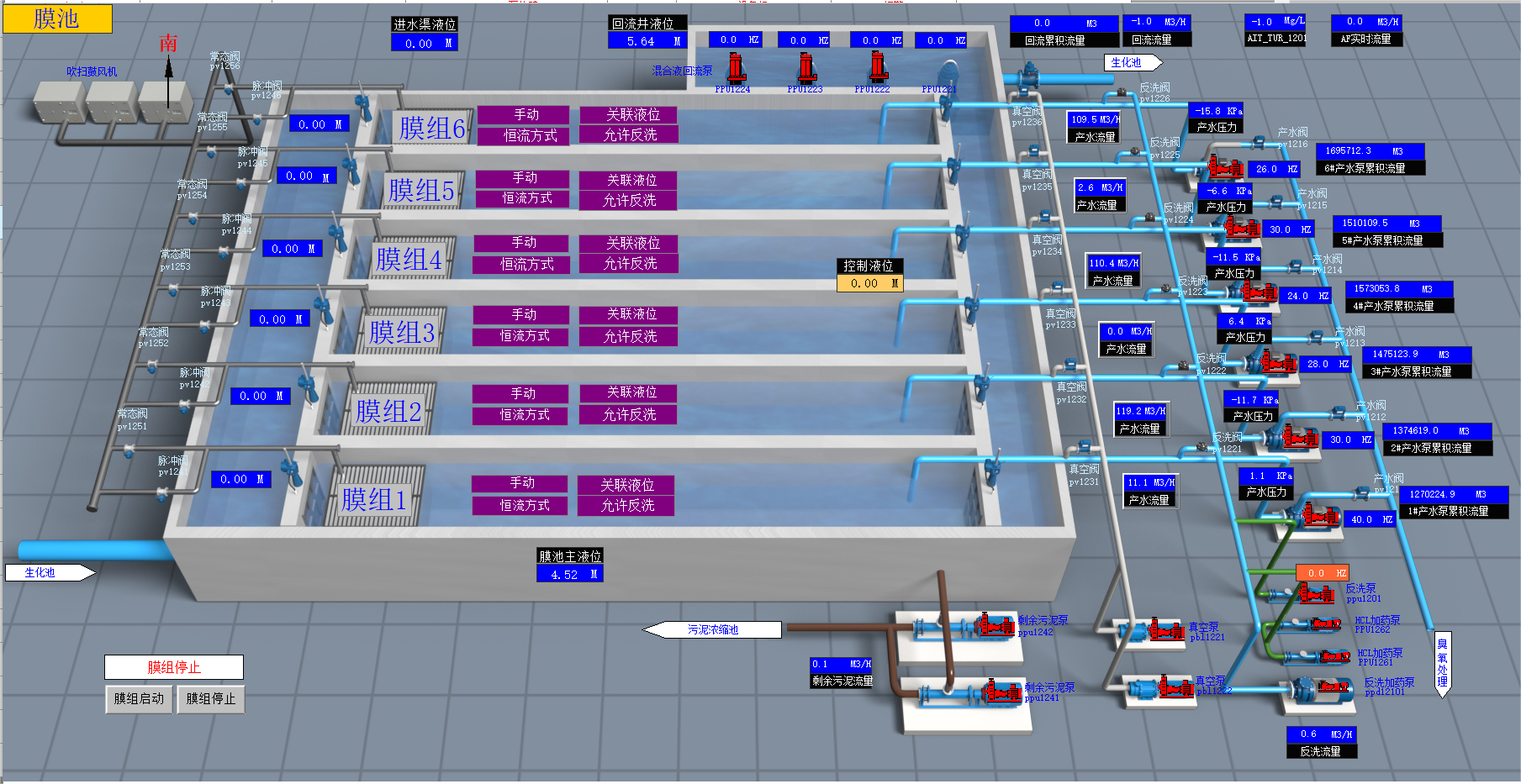 污水厂工艺组态监控系统界面图